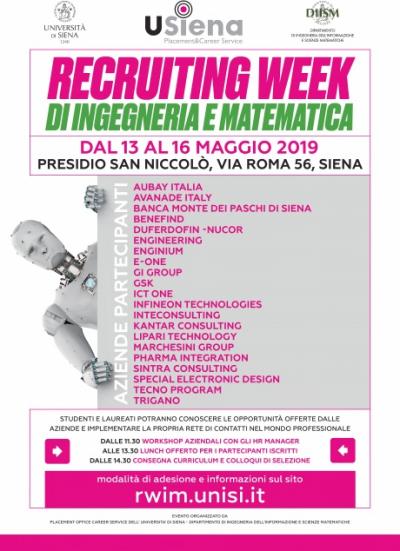 La Recruiting Week è organizzata dal Placement Office&Career Service di Ateneo e dal Dipartimento di Ingegneria dell'Informazione e Scienze matematiche.