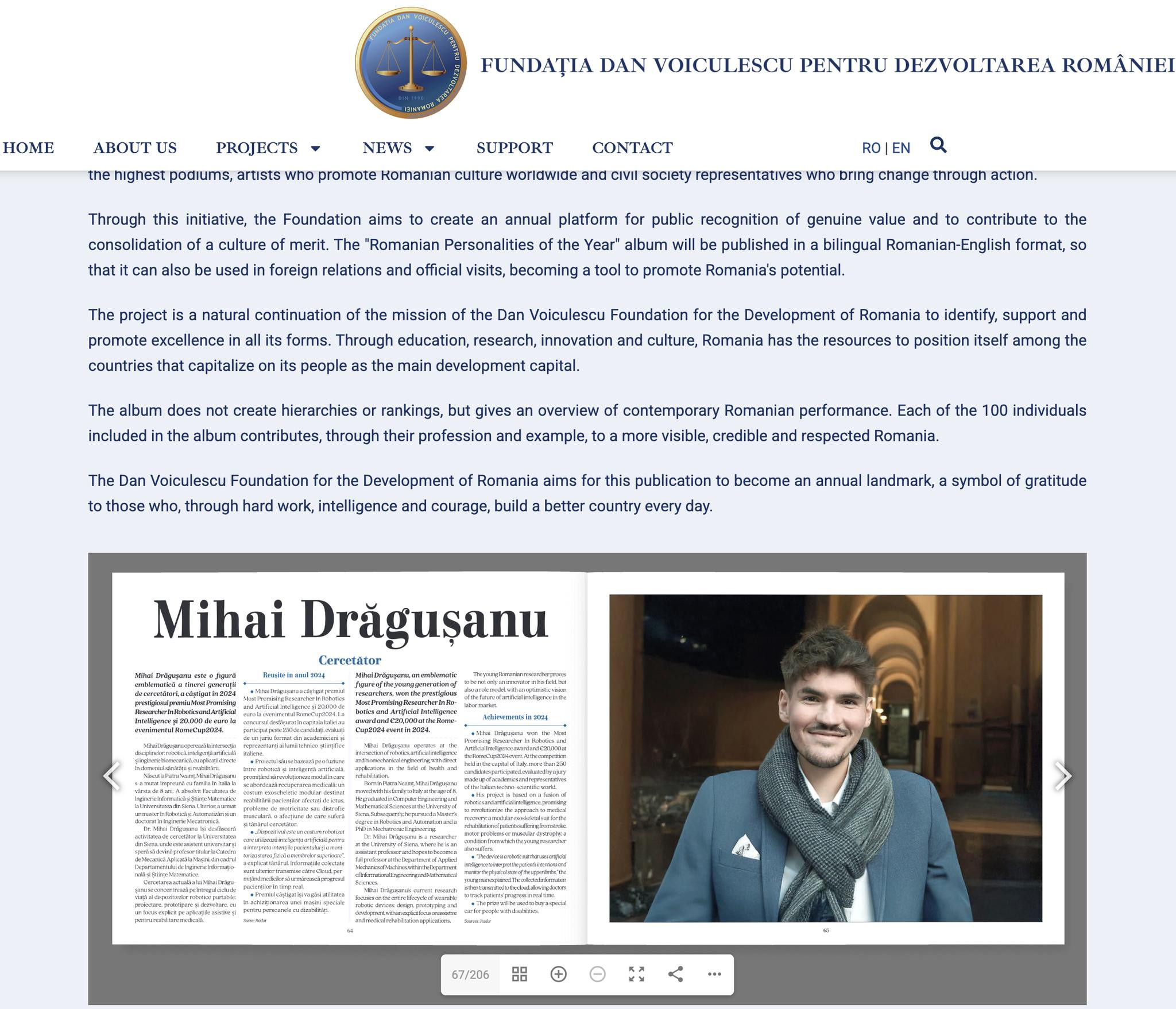 Mihai Dragusanu, RTD-A presso il DIISM, è stato incluso nel catalogo “Personalità dell’Anno in Romania” (edizione bilingue rumeno–inglese), pubblicato alla fine del 2025 dalla Fondazione Dan Voiculescu per lo Sviluppo della Romania (Fundația Dan Voiculescu pentru Dezvoltarea României).