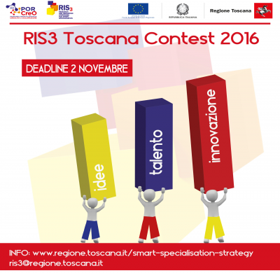 Il Contest, rivolto a ricercatori, studenti e startupper della Toscana è finalizzato a premiare attività di ricerca ed idee di business che incarnano e promuovono maggiormente le finalità della Strategia Regionale di Specializzazione Intelligente (RIS3) adottata dalla Regione Toscana per il periodo di programmazione dei fondi SIE 2014-2020.